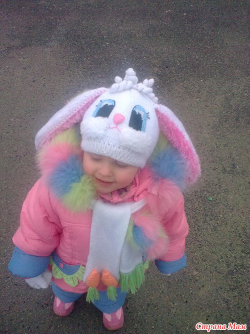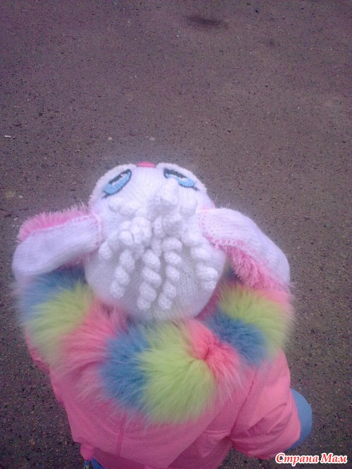 Вязала в основном по описанию, но как каждая рукодельница что то подстраивала под себя. Получилось очень Забавно, в городе все оборачиваются и улыбаются( и конечно маму хвалят