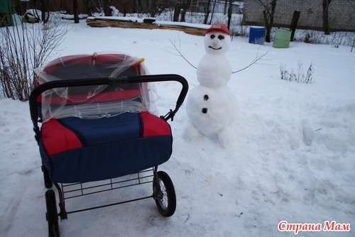 Вышли на улицу малявок укачать, да и снежок во дворе почистить, и захотелось слепить снеговика. Снежок липкий, на улице +1. Красота