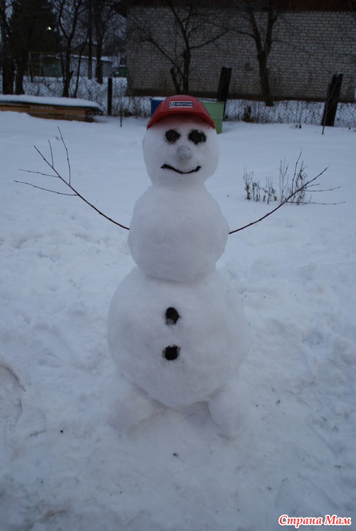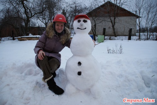 ну и вот что получилось в итоге (мужа тоже напрягла, искал палочки для рук снеговику и глазки)