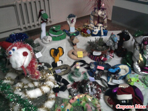 Наверное как у всех в школах дают задание детям на определенную тему к НГ. В том году были елочки и снеговички, а в этом змеи и новогодние букеты.