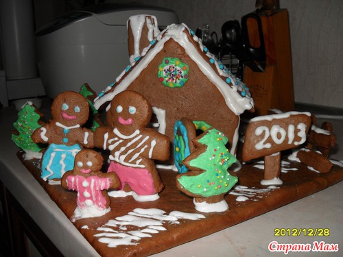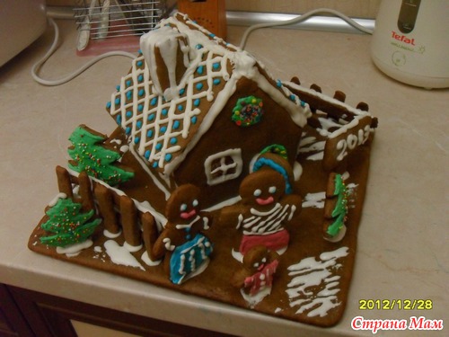 Вот и я присоединилась к тем, кто решился все же испечь пряничный домик! Было страшно, но очень уж хотелось попробовать. Оказалось все не так уж и сложно, только времени, конечно, занимает не мало. И спасибо сестре, помогла вчера все раскрасить