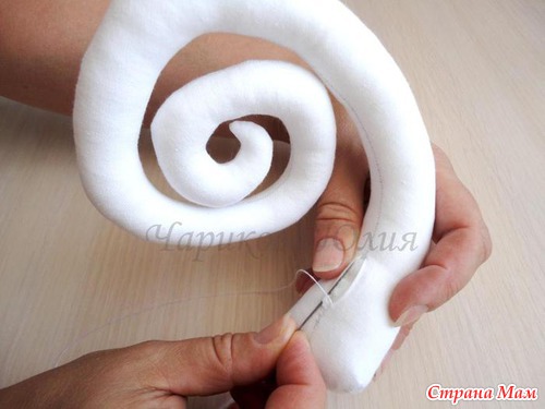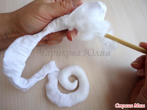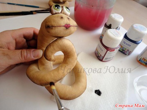 Набиваем нашу Змеюку кто чем любит. Зашиваем открытое место потайным швом.