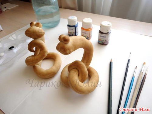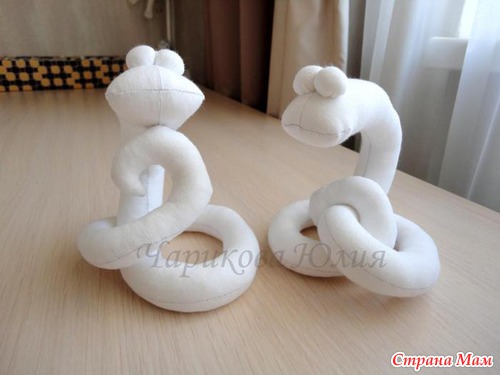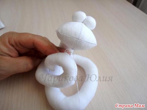 Теперь формируем позу змеи. Крутим-вертим пока нам не понравится. Для большей устойчивости фиксируем ниткой места соприкосновения