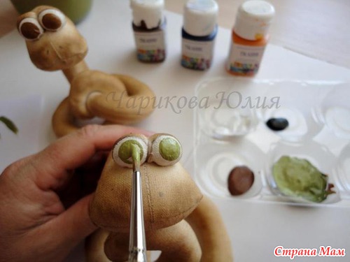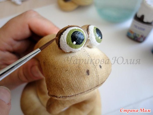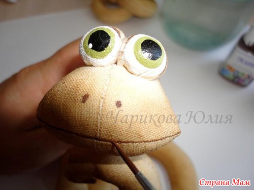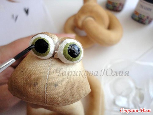 Пришиваем глазюки потайным швом к голове нашей будущей красавицы