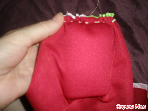 8) теперь берем полоску красной ткани ДЛИННУЮ