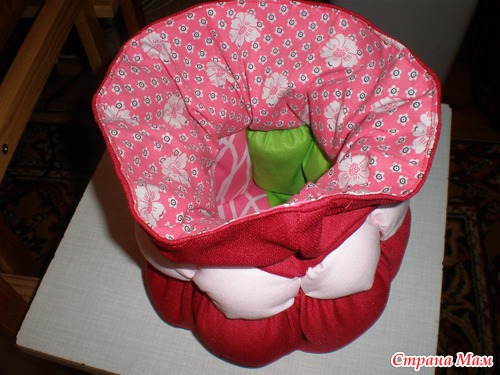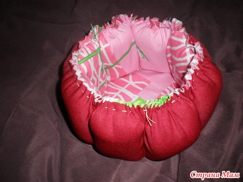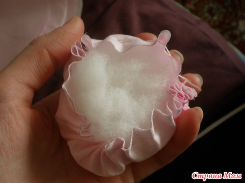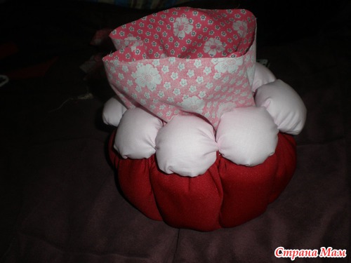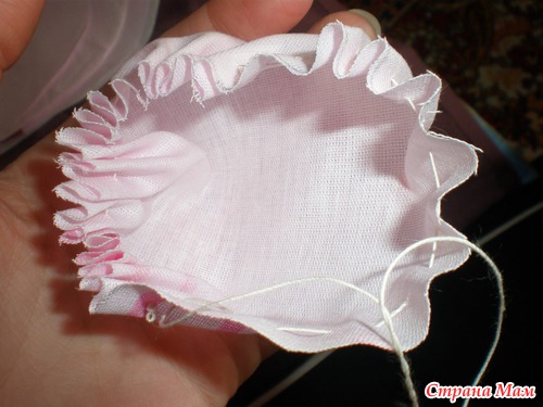 И так по кругу зашиваем все кармашки ОДНОЙ НИТКОЙ, и стягиваем чтобы получилась"бочечка". Нитку возьмите покрепче!