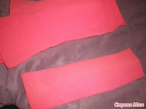Нарезали восемь одинаковых полосок поролона, по высоте равной высоте кармашка