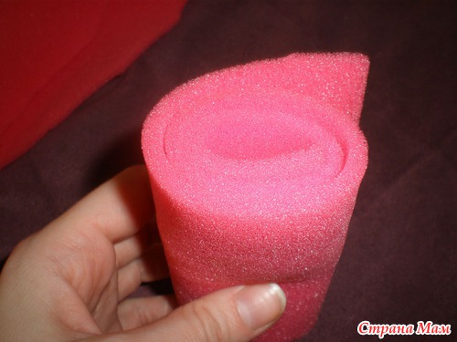 Дальше скручиваем полоску поролона