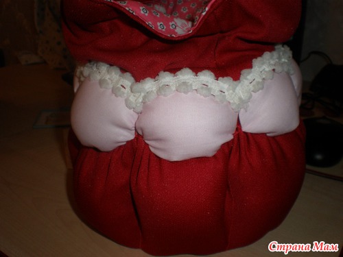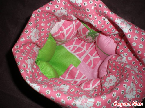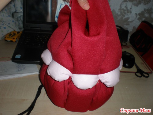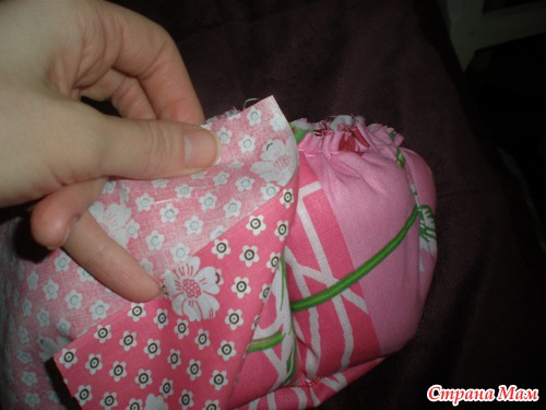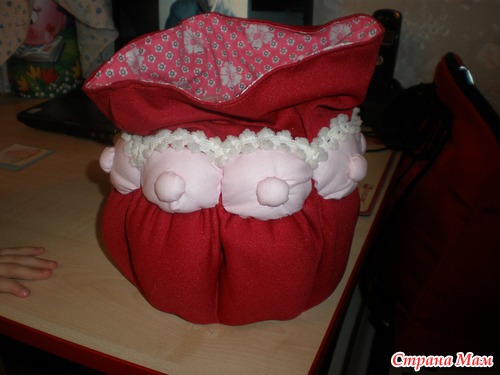 И девчонки уговорили меня сделать по нему МК, вот я за сегодня сшила еще один такой мешочек, только поменьше. Получился он из остатков, немного набивки не хватало, но думаю и так неплохо