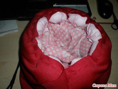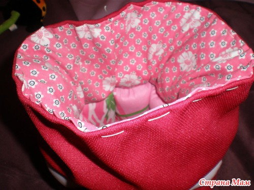 Можно еще нашить на мех пуговки, я в первом мешке так и делала, а сейчас времени нету - Вы же ждете, так что пришьете сами без меня