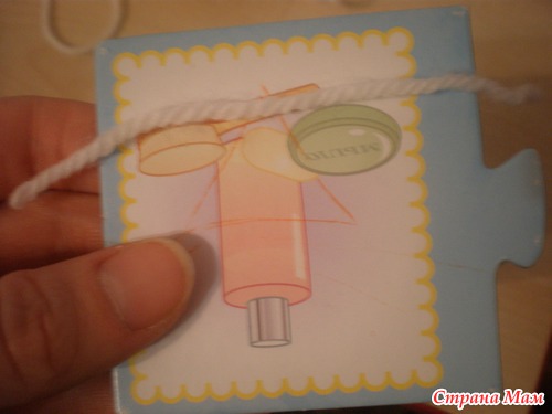 Отрезаем кусочек нити и кладем на картонку сверху