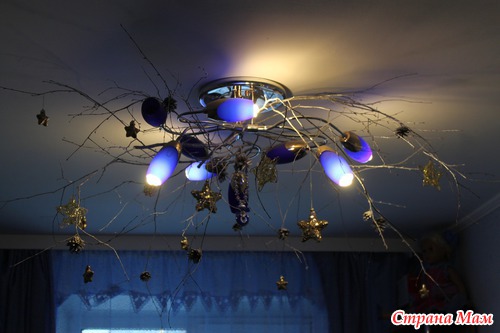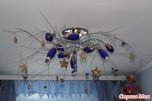 Ну и в спальне опять оформила люстру ветками и звёздами, как в прошлом году, было ещё много задумок, но на их реализацию не было ни сил ни времени, подождём следующий новый год...
