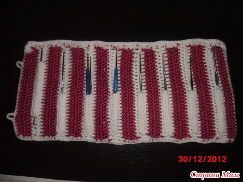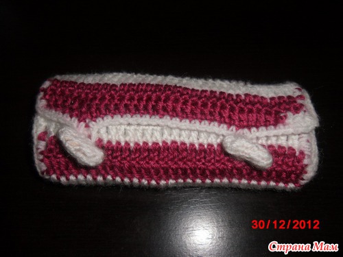 спасибо! вязала сама, набрала цепочку из вп на высоту крючков, а потом столбиками с накидом, в конце обвязала, сделала 2 петельки и пуговички пришила.и всё! готово! а я мечтаю о кловере, а вам удобно этими крючками вязать?