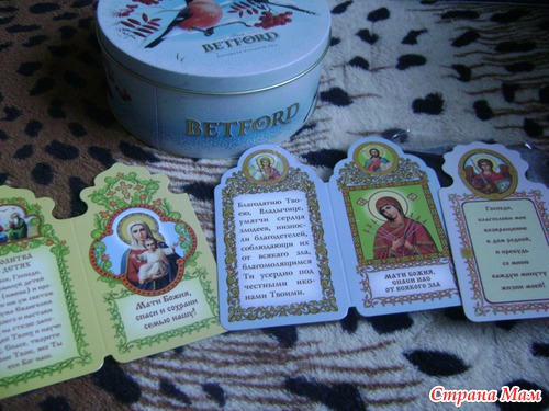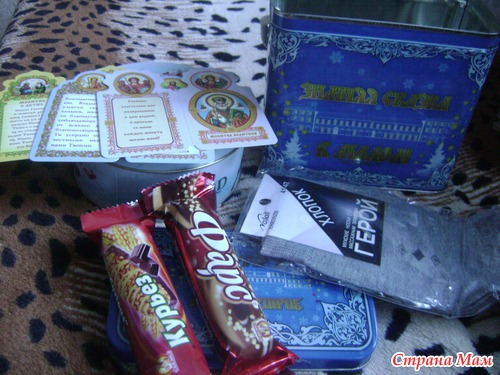 а в них:конфеты и открыточки с молитвами-За них отдельное спасибо