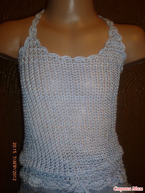 А на счет топа очень жаль, что всю красоту не передает фото. Я до сих пор под впечатлением от него, но все равно не могу решиться вязать из этой пряжи.