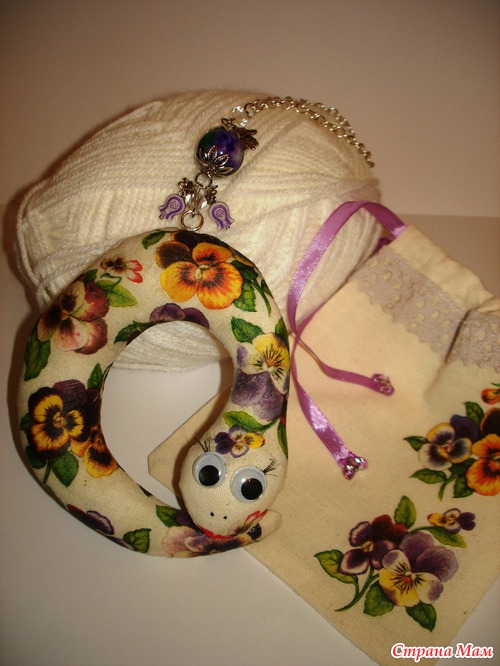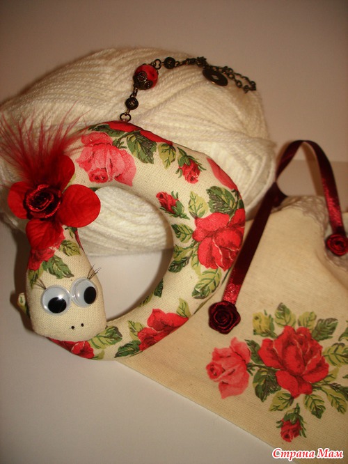 Славные девочки получили от меня такие вот подарки. Это пошитые мною змейки с декупажем и элементами бижутерии