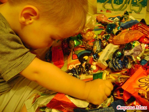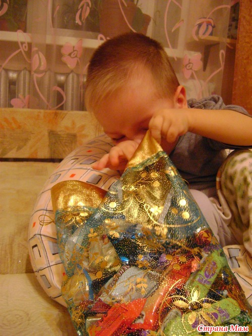 Данечка был очень рад! Он, как истинный сладкоежка, принялся разбирать мешок конфет. Вытаскивал по одной и клал рядом с собой. Такой забавный хомяк, перемазался весь шоколадом ))) Потом принялся разбирать раскраски, фломастеры и открытку. Все рассматривал с интересом. А потом вновь принялся за конфеты. Перебирал, а тааам!! Мы таких конфет не видели никогда. У нас таких не продают ( да и покупаем мы их если честно, очень изредко). Элла! Спасибо огромное за такой чудесный Новогодний сюрприз!