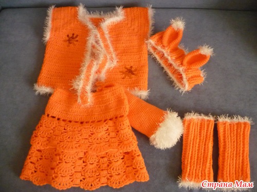 Так что, я теперь с вами, девочки, по мере возможностей. Начнем с последней работы. Вязала для доченьки карнавальный костюмчик лисички)))) Принимайте)))