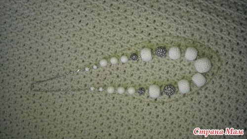 1) Колье "Первый снег". Агат натуральный, обвязанные бусины, бусины из полимерной глины, металлическая фурнитура.