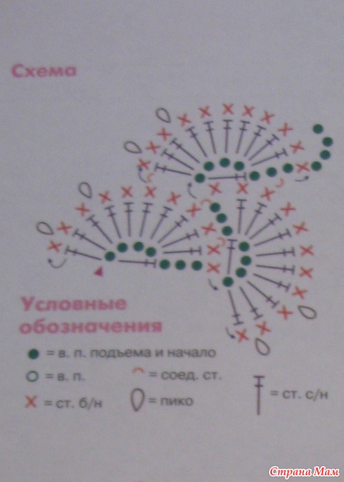Сначала выполняется полоска, необходимой длины по данной схеме, а потом вяжется вторая полоска и объединяется с предыдущей полоской соединительными столбиками в пико предыдущей полосы.