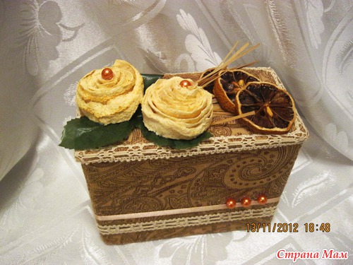Вот такая шкатулка получилась из мусора почти.