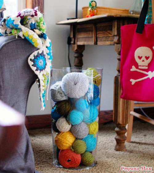 Идеи интересные Но у моего хомяка столько пряжи,что никаких банок не хватит.У меня в пакетиках ,на полочках в шкафу ,ткани и прочее тоже.Так и мужу меньше в глаза бросаются мои сокровища