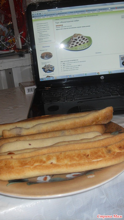 Ну так вот, перед НГ показала в инете мужу фотки этого торта. Он одобрил. Купили мы все необходимые продукты. Вчера меня проперло. Стала печь. Вот рецепт, по которому я пекла. Взят отсюда http://relax.ua/menu/monastery-hut-cake