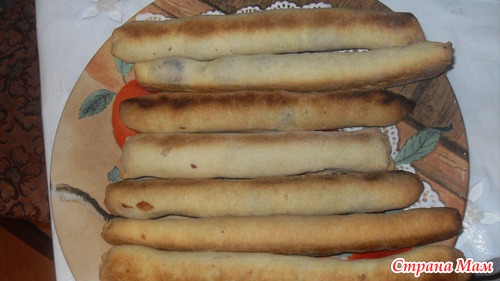 8. Максимально ровно выложите трубочки на противень швом вниз, подровняйте по длине, и выпекайте до румяного цвета около 10 мин при температуре 180°С. Желательно перевернуть трубочки, когда низ подрумянится, чтобы подрумянить верх.