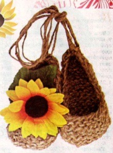 Такие лапти связанные спицами №2 из пеньковой веревки(диаметр 3,5), могут украсить вашу кухню.