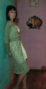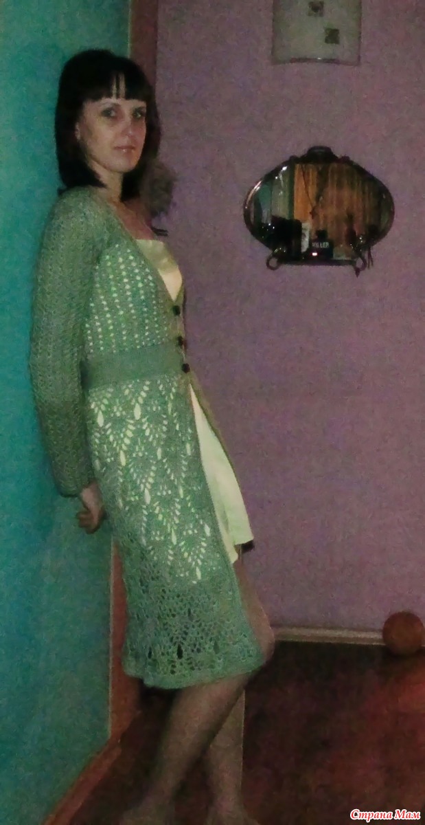 Впервые я столкнулось с тем, что пряжа из одной упаковки в разных мотках может различаться!!! Читала, конечно, об этом, но никак не ожидала заметить это по окончании работы))) Вот вязала я этот кардиган медленно, бросая и снова к нему возвращаясь. А когда закончила, оказалось, что рукава безобразно полосатые) Ну что буду с этим делать, пока не знаю) когда-нибудь может и вернусь к нему) пряжа "Пехорка акрил", крючок №3