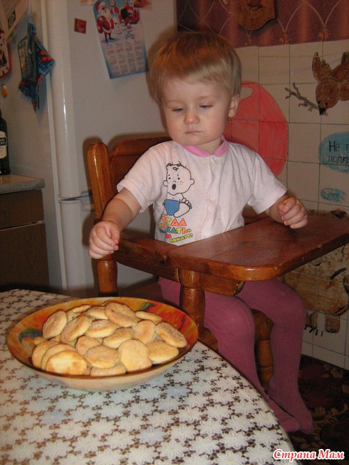 Как печенье было готово, сразу захотел их попробовать, всегда, когда просит кушать, губками шлепает