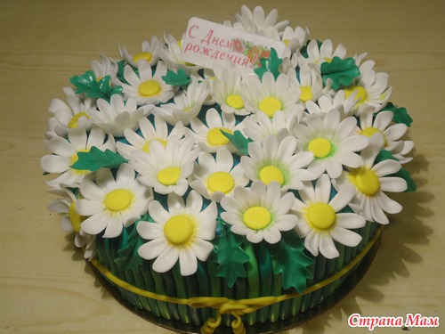 Букет ромашек. Шифон, йогуртовое суфле, персик, вишня. Вес 4 кг.
