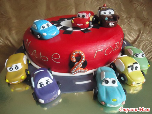 Тачки. Медовик, крем от торта добош. Вес торта без украшений 4,5 кг.