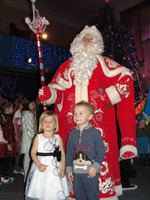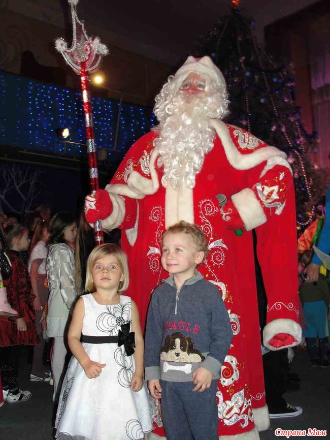 Это когда фотограф заставлял всех фотографироваться с дедом морозом. ОООчень торопился, вот и Маргоша видимо не поняла кто это слева, чего ее к нему толкнули