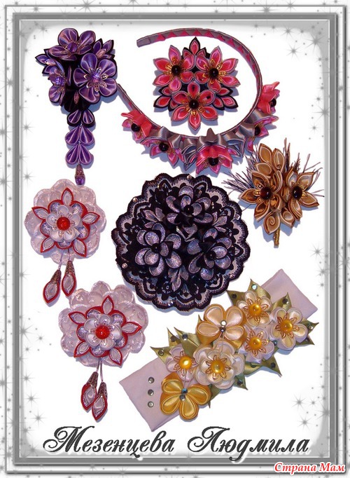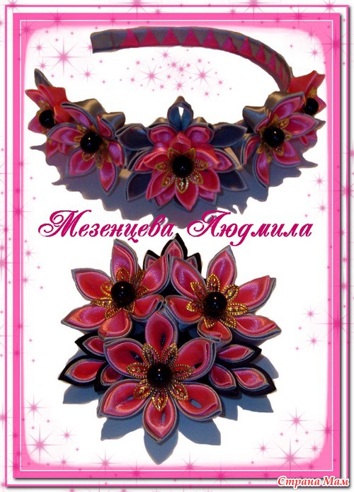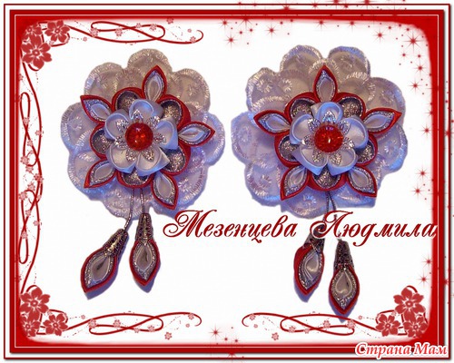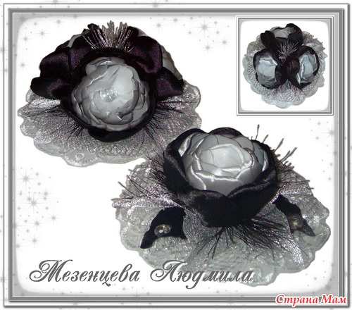 И комплект. Заколка-крокодил три цветка и одиночный цветок, может использоваться как брошь, украшение на поясе платье или на руку.