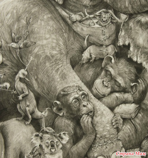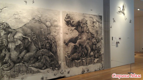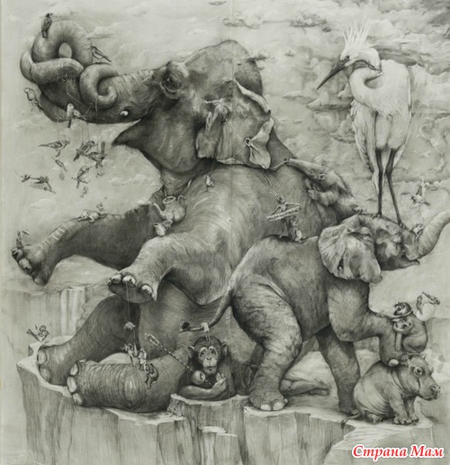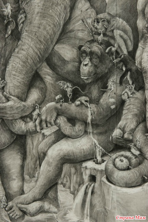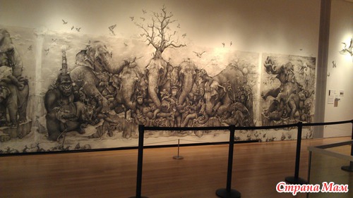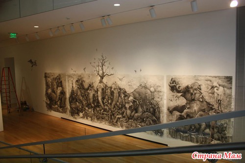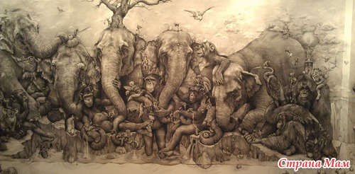 Получившийся триптих называется Слоны (Elephants) и поражает не только своими размерами, но и потрясающей детализацией. Работа была выполнена в рамках ежегодного творческого конкурса ArtPrize