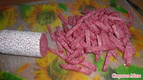 Правда колбаса не салями и сыр положила копченый колбасный, но все равно вкусно было.