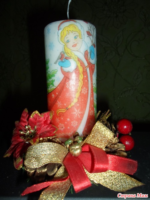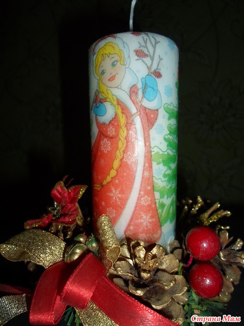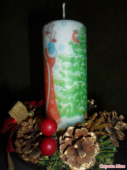 Хотела я перед НГ тоже свечу задекупажить, приехала в свой любимый супермаркет взяла 2 свечи (ну и всякой всячины