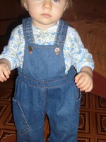 вот такие штаники я сшила из папиной джинсовой рубашки из которой наш папа уже вырос!
