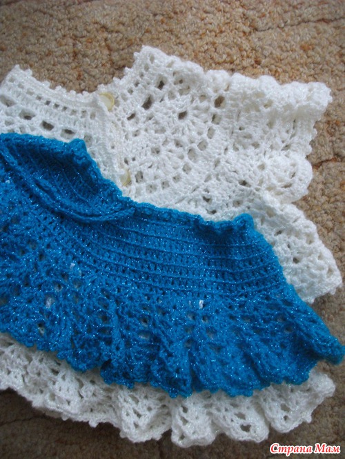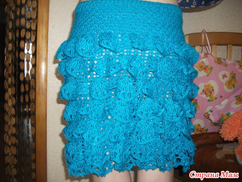 Спасибо!! !Поделилась бы с радостью,но я её связала без схем,просто так,низ филейная сеточка,а рюши просто ракушки с добавлениями,само собой как-то так придумалось,можно ведь любые рюшки подобрать.верх связан,ст.с накидом за заднюю стенку,вот и получились полосочки.