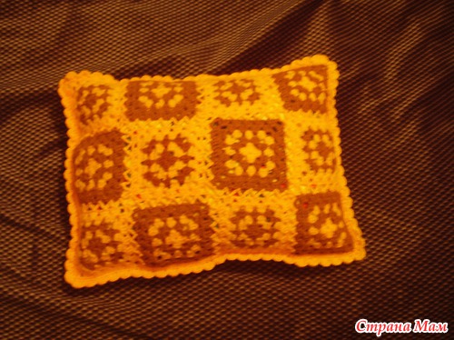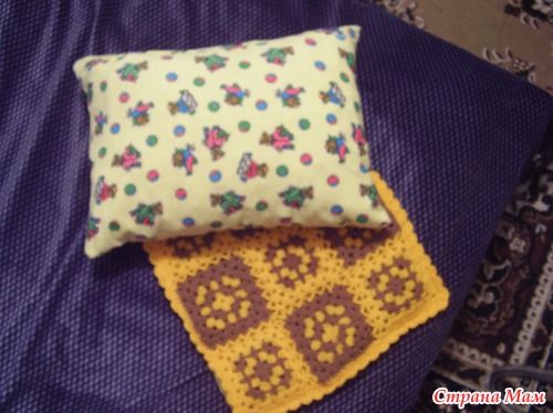 Осталось у меня немного материала и несколько квадратиков. И пришла мне в голову идея. Почему бы не дополнить одеялко подушечкой. И вот что у меня получилось.