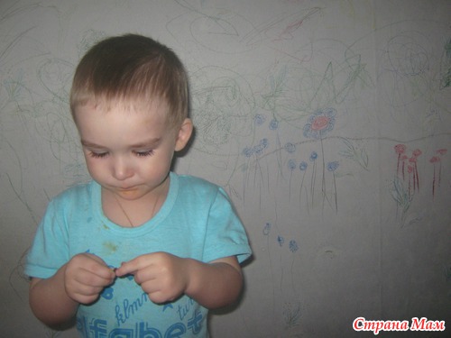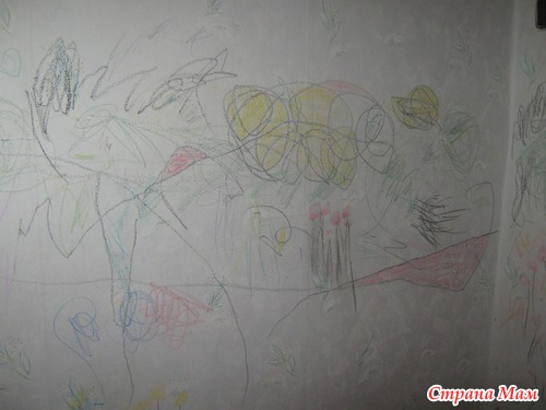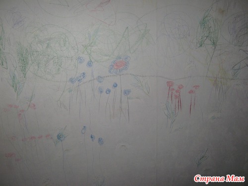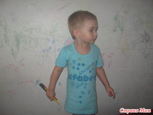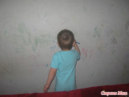Осенью переехали жить к бабушке, и она разрешила рисовать Кириллу на стене в комнате.( собралась обои менять)
