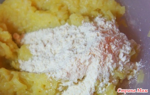3. Добавить к полученной массе просеянную муку, перемешать. Основа для картофельных палочек готова!