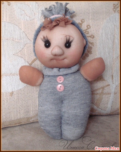А еще ему понравился у меня вот такой пупс. Самой мне он не очень нравится, есть в нем какая-то асимметрия, поэтому стоял он в уголочке и ждал, когда я его переделаю))