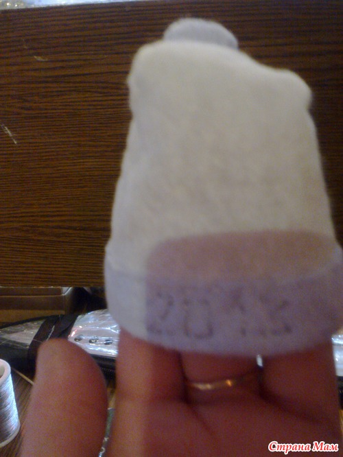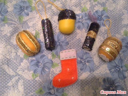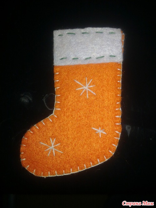 Сапожок из фетра с колечком. У меня таких штук 20 нашилось и всем раздарила уже. Можно на елочку повесить, а можно на ключи или сотовый телефон, как брелочек)))