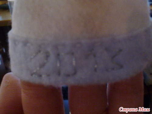 А еще мне заказали мини шапочку на игрушечного котейку. Шила из фетра, год вышила серебряными нитками, правда на фото слабо видно.