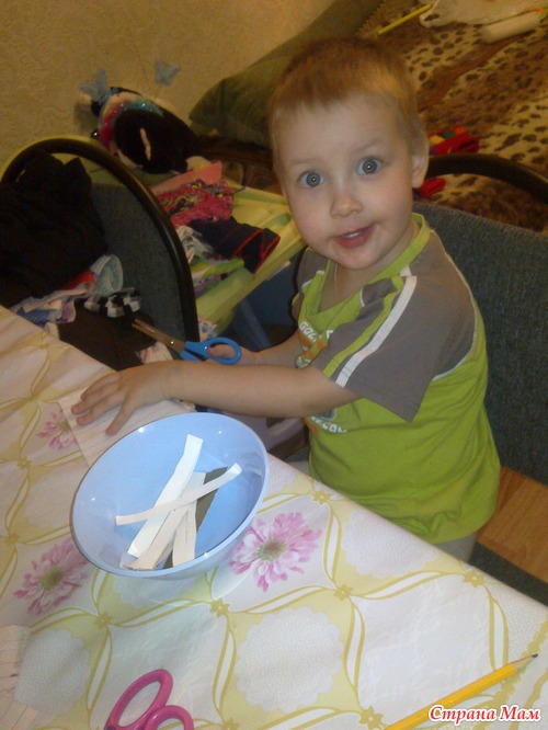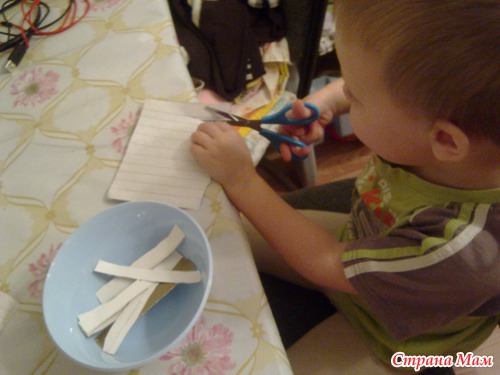Здесь дочка в процессе нарезания полосок, она умничка все полоски нарезала сама, Я только линии расчертила, ну а клеили мы вместе.