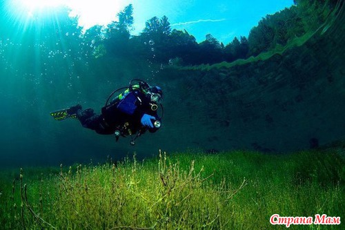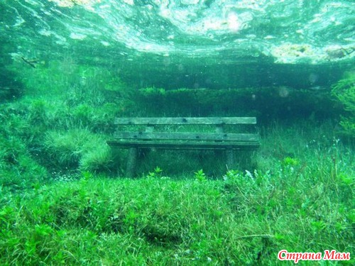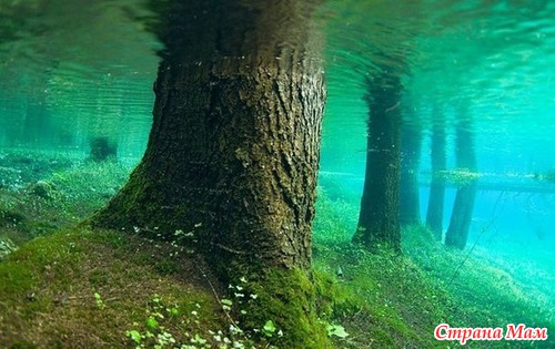 В Австрии есть удивительное место – Gr"uner See (Зелёное озеро). С августа по апрель – это зелёный парк с тропинками, скамейками, зелёными полянами, мостиками через ручьи.