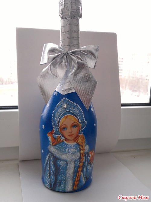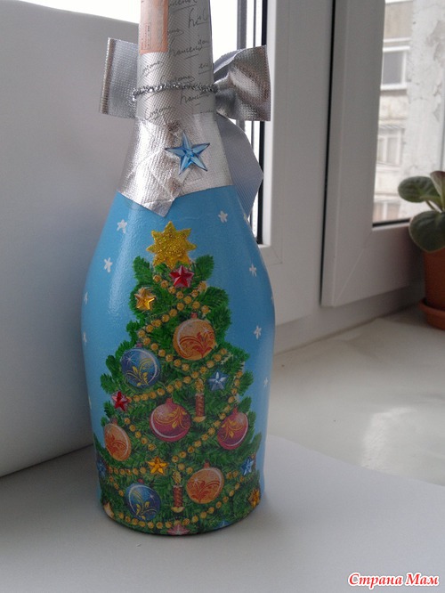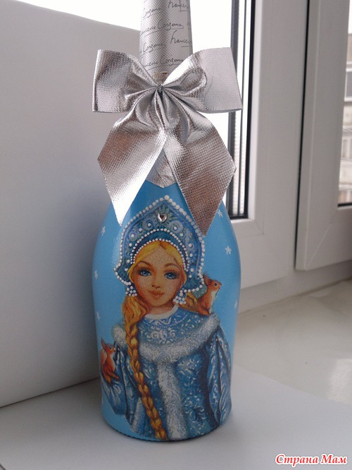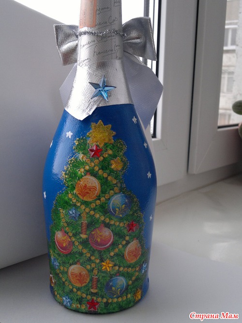 А вот до бутылок думала не доберусь, а нет... добралась, правда одинаковые получились, но т. к. они дарились в разные семьи, так, что никто не расстроился.