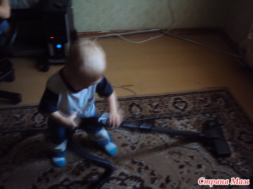 " Оставляю маааленькую мощность включённой и малыш сам "пылесосит"...(ребёнка отвлекаем, пылесос убираем
